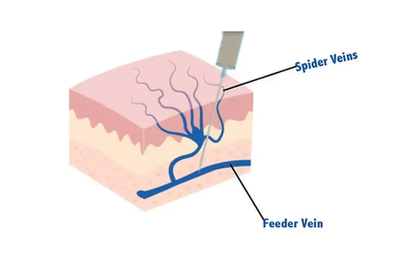 Sclerotherapy Q & A What is Sclerotherapy? Medicine is injected into a damaged varicose vein to scar and collapse the vein, forcing blood back into a normally functioning vein. …