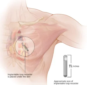 An implantable loop recorder (ILR) is a small device—about the size of a pack of chewing gum—inserted under your skin to record your heart’s electrical activity. The device is implanted on the left side of your chest just below the nipple line. Your doctor will numb the area with local anesthesia and create a small pocket under the skin to hold the device. You can go home the same day, but you may experience bruising and pain in the implant area for a few days. Once implanted, the ILR continuously monitors your heart’s activity. When it detects an arrhythmia, it freezes that portion of the memory to review later. It can be activated when your heartbeat becomes too fast or too slow, or if you trigger it manually to start recording.